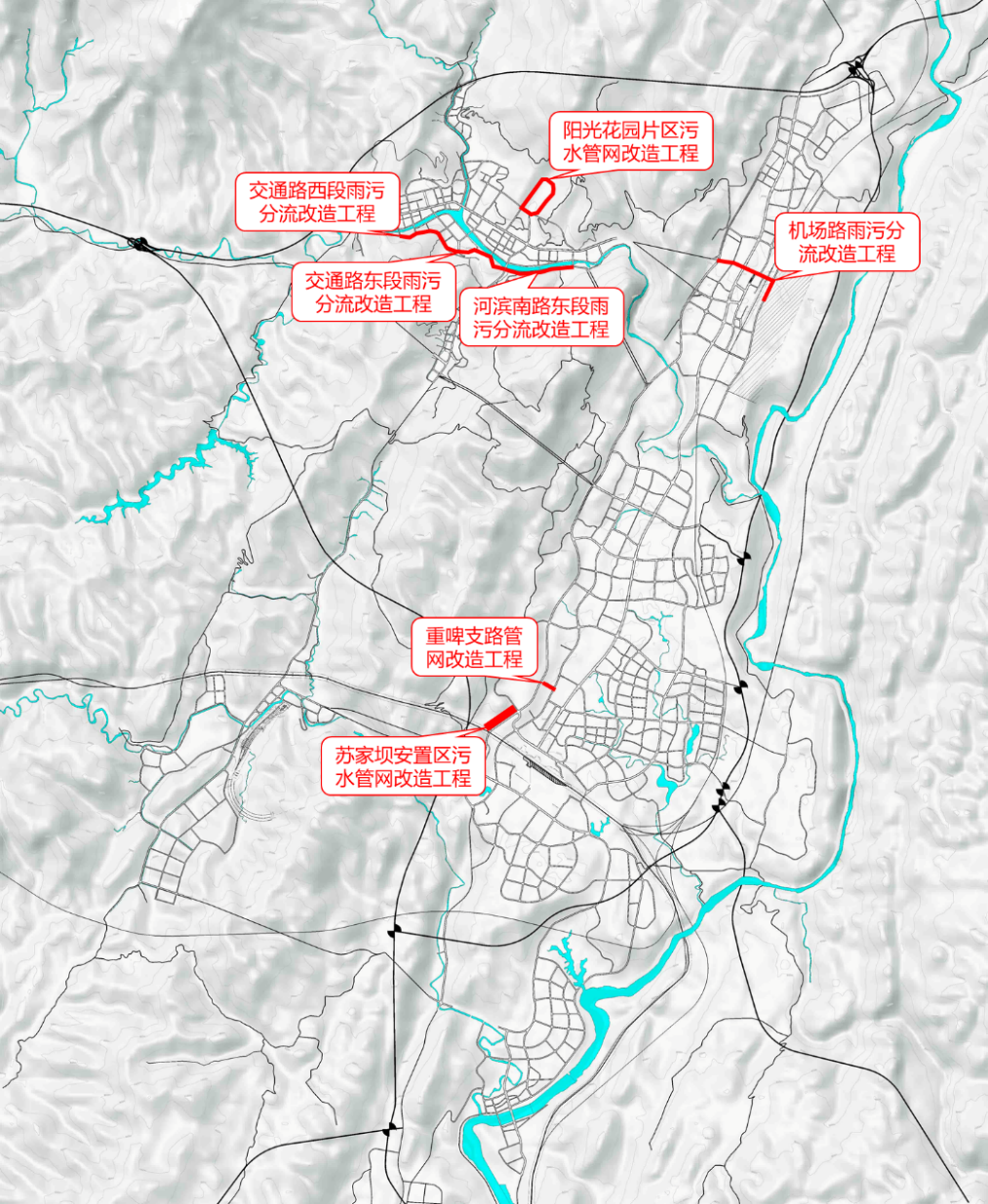 因地制宜開展管網(wǎng)更新修復和改造。因地制宜采取溢流口改造、截流井改造、破損修補、管材更換、增設調蓄設施等工程措施,對現(xiàn)有雨污合流管網(wǎng)開展改造,降低合流制管網(wǎng)溢流污染,重點開展交通路東段、交通路西段、河濱南路東段、機場路、朝陽路、金龍路、城西片區(qū)、城北片區(qū)雨污分流改造工程。結合老舊小區(qū)改造、城市更新實施混錯接、漏接、老舊破損管網(wǎng)更新修復,明確重點開展老舊小區(qū)源頭式的雨污水分流改造工程,提升污水收集效能,重點開展重啤支路、雨潤支路、蘇家壩安置區(qū)、陽光花園片區(qū)管網(wǎng)等改造工程。